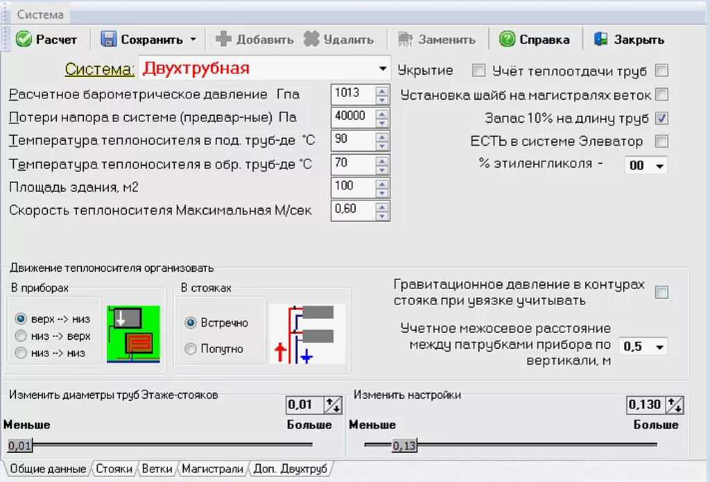 ПОТОК - программа для расчета систем отопления.